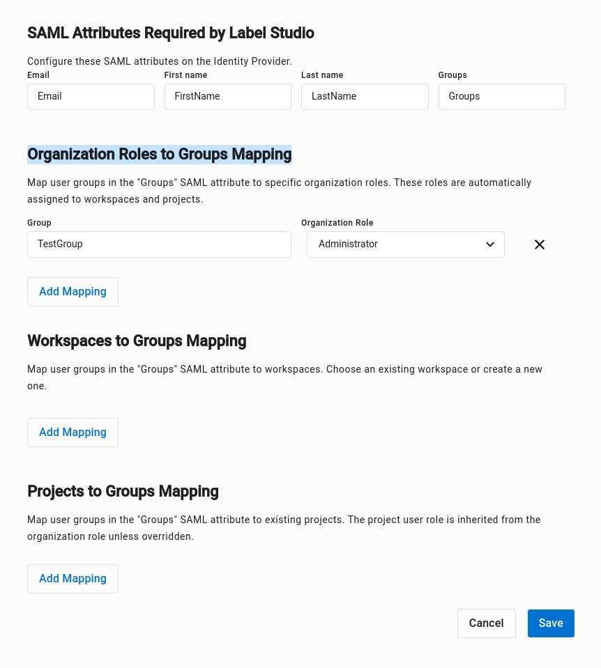 - Set up group mappings to roles and workspaces as needed. Ensure the group names match those sent by Google in the SAML response.