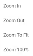 Zoom in, zoom out, zoom to fit, or zoom to 100%.